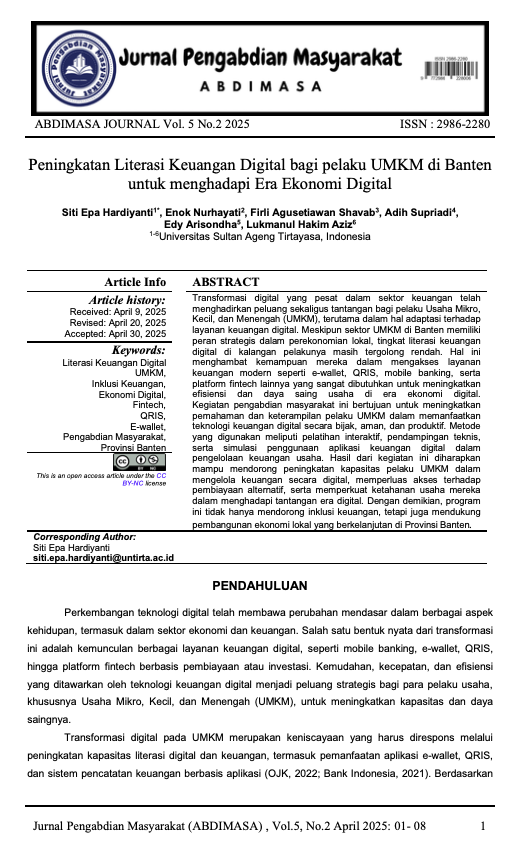 Literasi Keuangan Digital, UMKM, Inklusi Keuangan, Ekonomi Digital, Fintech, QRIS, E-wallet, Pengabdian Masyarakat, Provinsi BantenAbstract